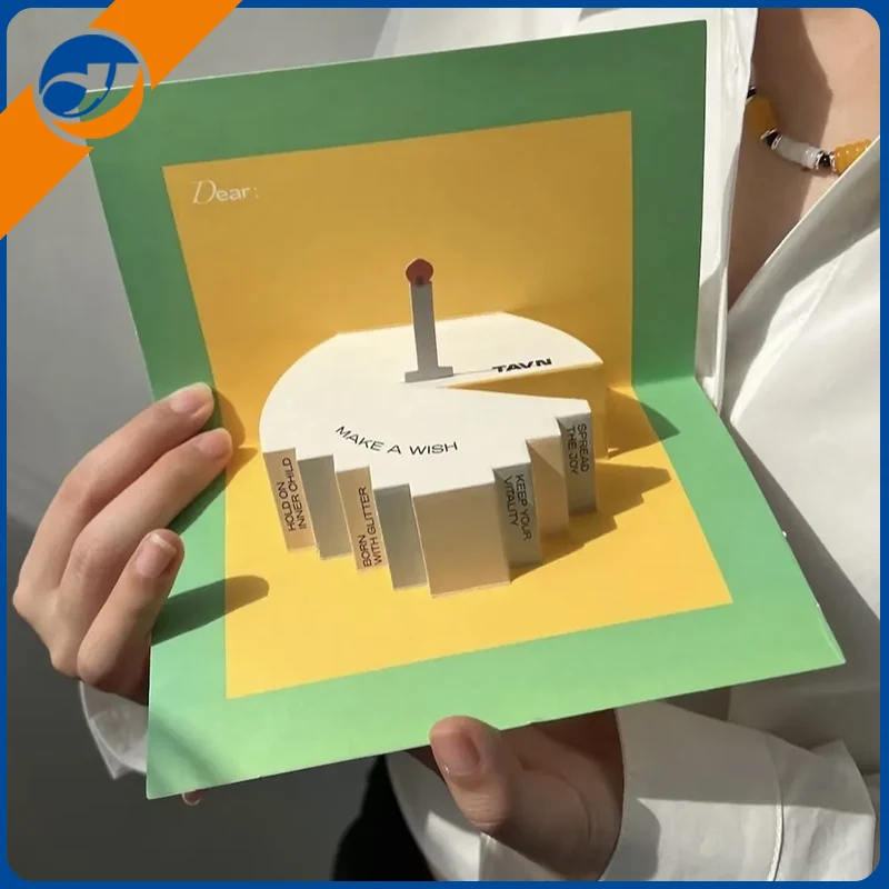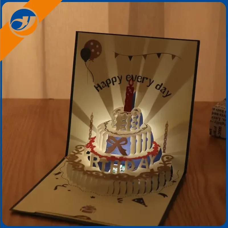 День рождения 3D бумажная открыткавыделяется с его отличительным трехмерным дизайном. Благодаря резьбе из бумаги, горячей штампочки и других техник, он представляет собой живую тематическую сцену дня рождения, такую как пирожные и воздушные шары, которая приносит визуальные сюрпризы получателю. КаждыйДень рождения 3D бумажная открыткаимеет уникальный дизайн.День рождения 3D бумажная открыткаможет удовлетворить потребности разных клиентов.