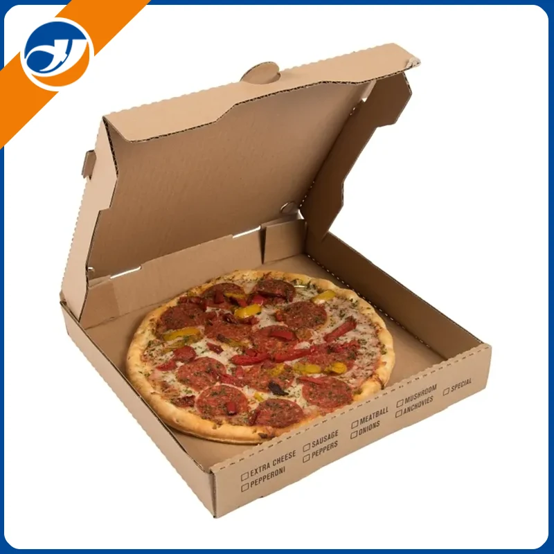 Визуальный дизайн: Kraft Paper Pizza Box использует визуальный дизайн окна, используя коробки для пиццы Kraft Paper, что позволяет потребителям видеть внешний вид пиццы, не открывая коробку, увеличивая привлекательность покупки.