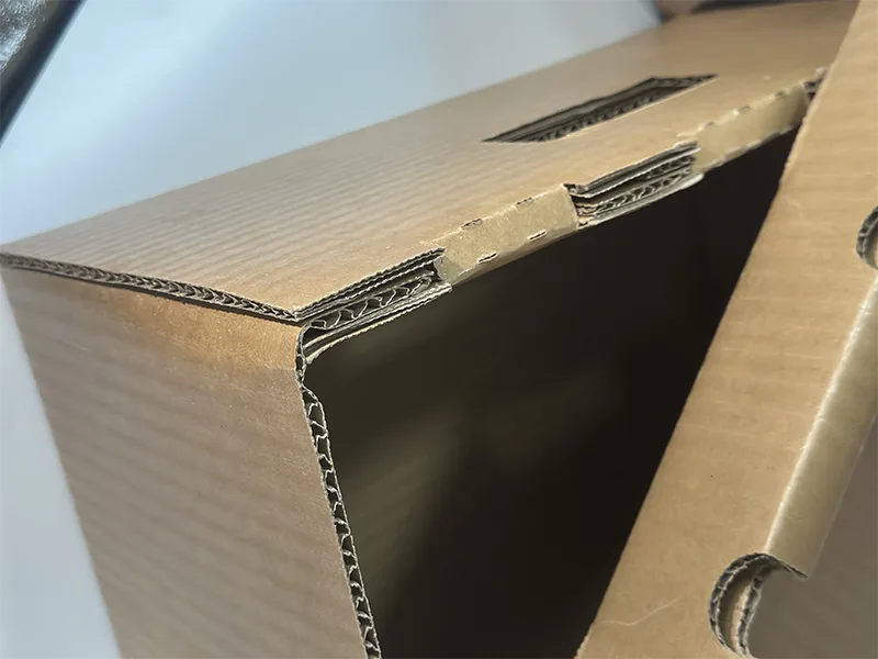 Несущие преимущества больших водонепроницаемых коробок из гофрокартона заключаются не только в целенаправленном структурном усилении, но и в гарантии водонепроницаемости, обеспечивающей устойчивость к нагрузкам. С точки зрения конструкции, нижняя коробка основного несущего компонента будет изготовлена из утолщенного гофрированного картона для повышения прочности на сжатие дна, что позволяет стабильно выдерживать крупные продукты весом 20-50 кг. При этом навес изготовлен из плоского и жесткого картона, обладающего достаточной жесткостью. При штабелировании и хранении (обычно в 2-3 слоя) вес верхнего ящика можно равномерно распределить на нижний навес, без риска обрушения.