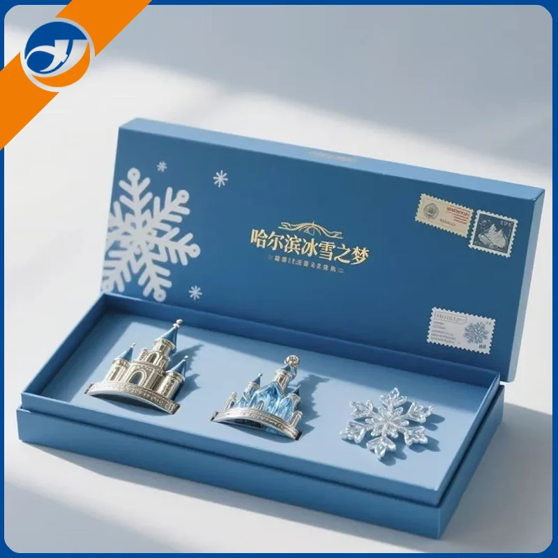 The магнитная подарочная коробкаИзготовлен из картона высокой плотности или экологически чистого ДВП, покрыт тактильной специальной бумагой, матовой пленкой или материалом с текстурой кожи, создавая ощущение роскоши.