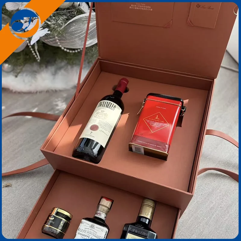 Совместимость с несколькими бутылками:Винная упаковкаМодульный внутренний поднос может содержать 1-6 бутылок, поддерживая смешанные винные наборы и бутылки специальной формы (такие как бутылки с шампанским).
